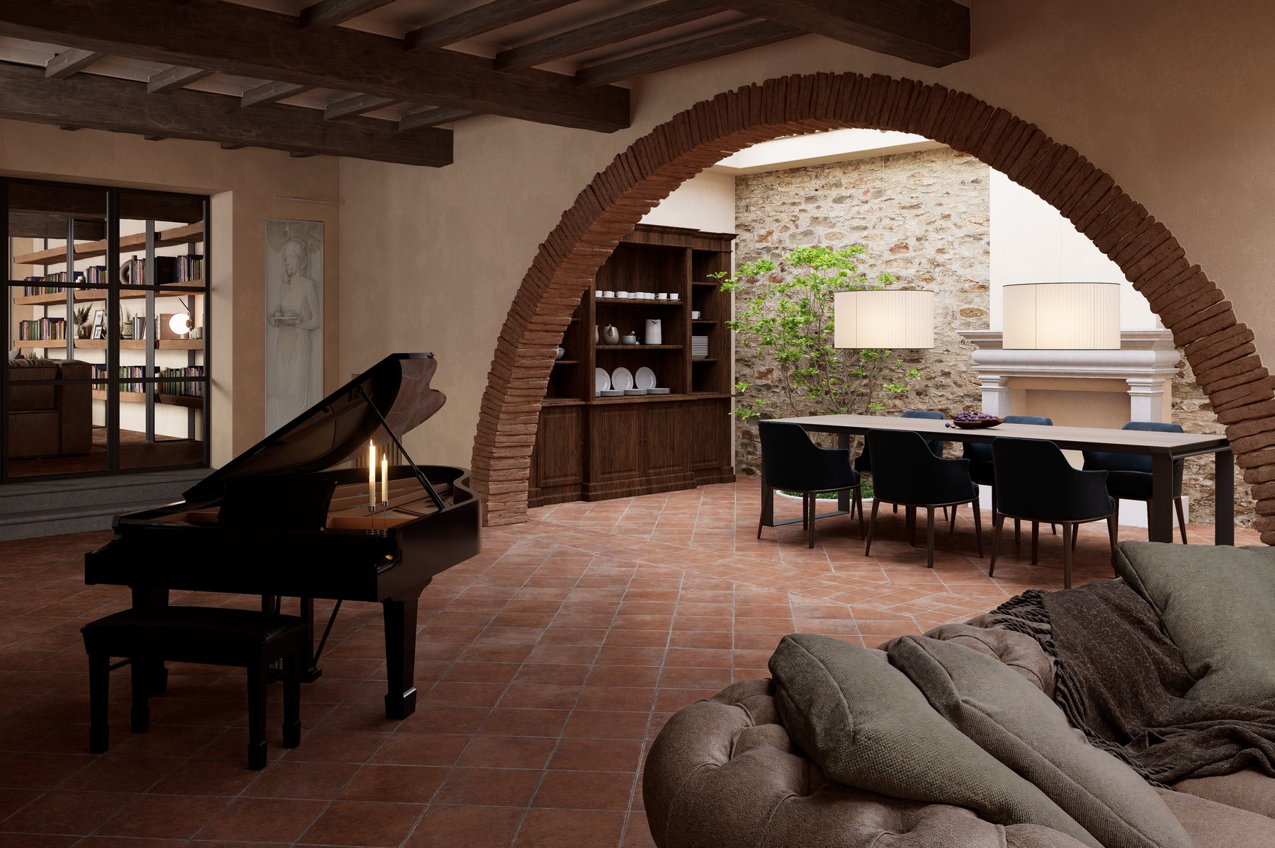 Un luogo dove la luce scivola tra le arcate.L’interno diventa paesaggio dell’anima, intreccio di quiete e memoria, dove ogni gesto ritrova la sua misura e ogni suono abita lo spazio come una presenza lieve