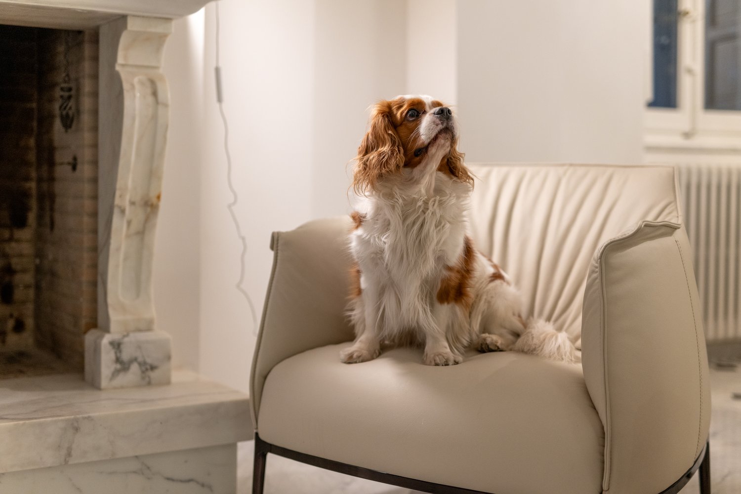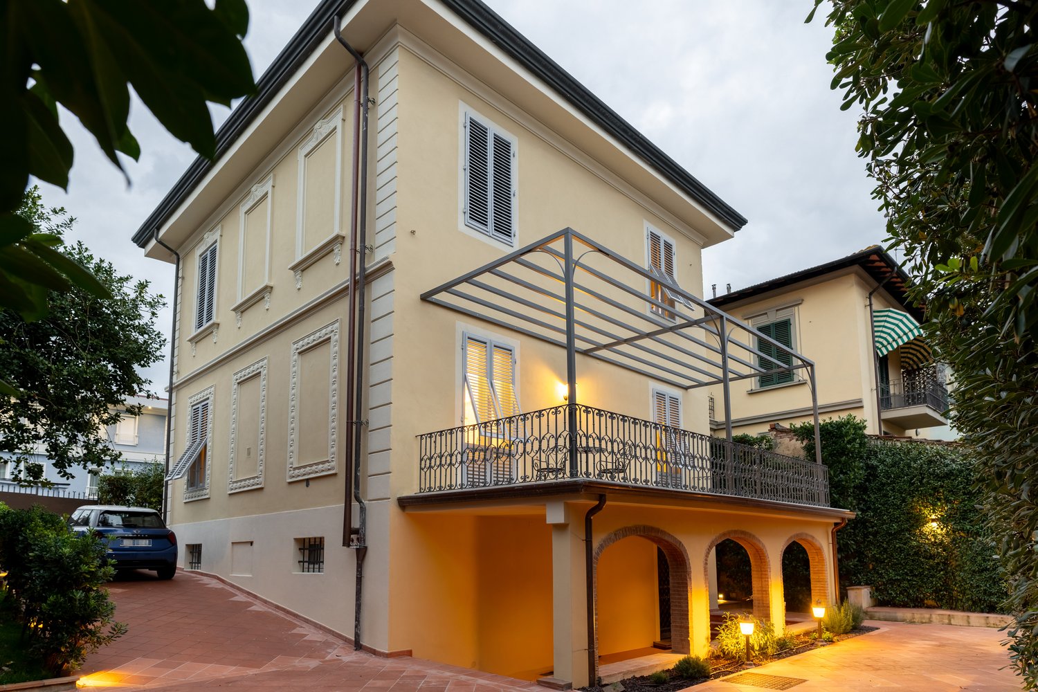 Entering this residence feels like being transported to a bygone era… the white marble floors with black inserts, the classic fireplace, the iron balustrade with its turned wooden handrail are elements that evoke a refined style, elegance, and meticulous attention to detail.From this sensibility comes a project intentionally focused on restoration and the enhancement of the existing space.