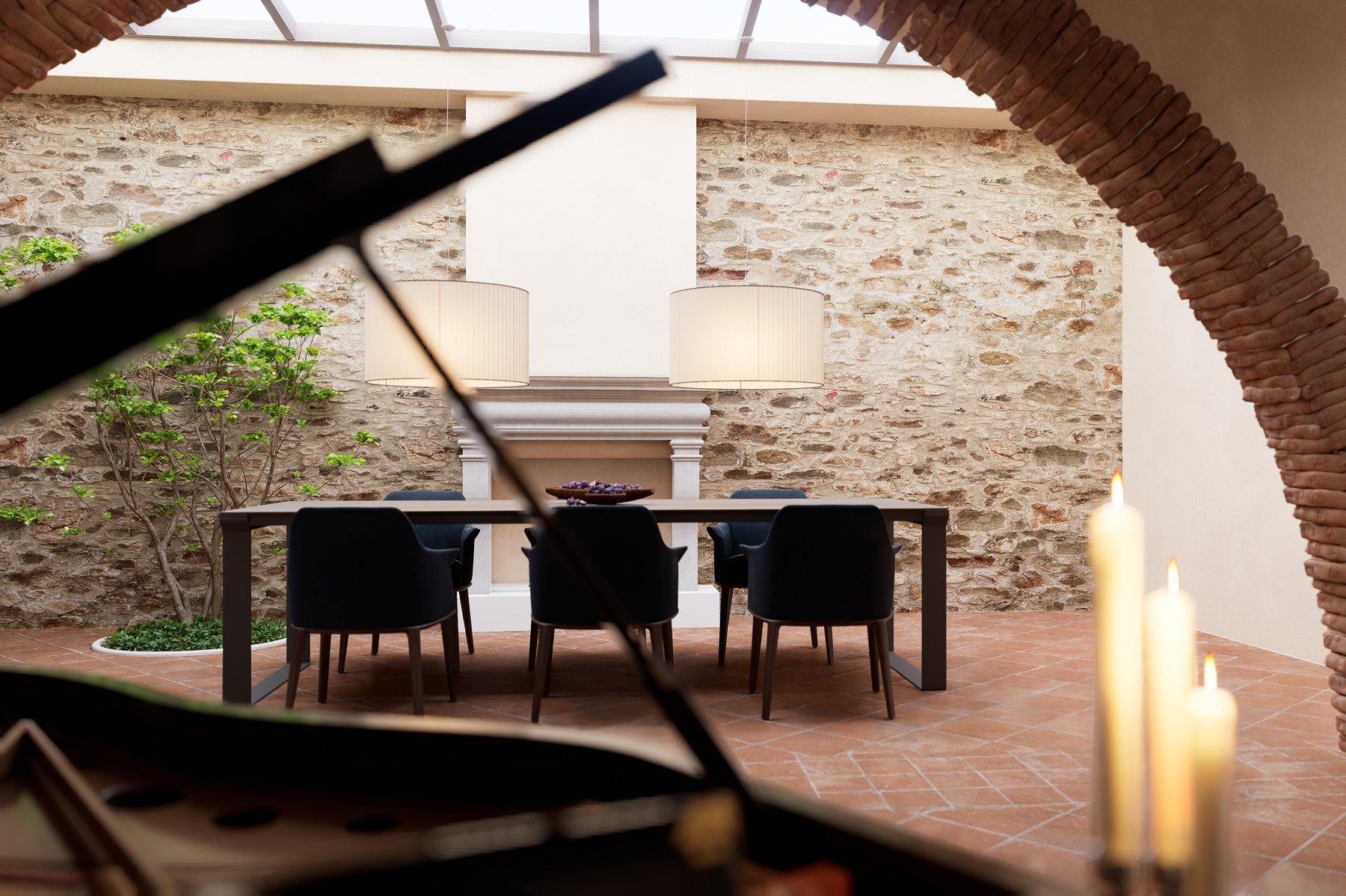 Un luogo dove la luce scivola tra le arcate.L’interno diventa paesaggio dell’anima, intreccio di quiete e memoria, dove ogni gesto ritrova la sua misura e ogni suono abita lo spazio come una presenza lieve